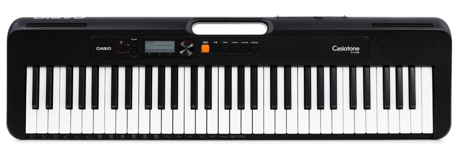 Avec ses 61 touches et sa sangle de transport, le CT-S200 extrêmement stylé garantit une musique de qualité, que vous soyez chez vous, en studio ou sur la route. Parmi les fonctions qu’il propose (au minimum) : le mode Dance Music, qui permet aux musiciens débutants de créer de véritables tubes, la possibilité d’une connexion à l’application d’apprentissage gratuite « Chordana Play For Keyboard » et un raccordement PC via un port USB. Le modèle CT-S200 est aussi équipé de piles. Vous êtes prêt pour le prochain jam !