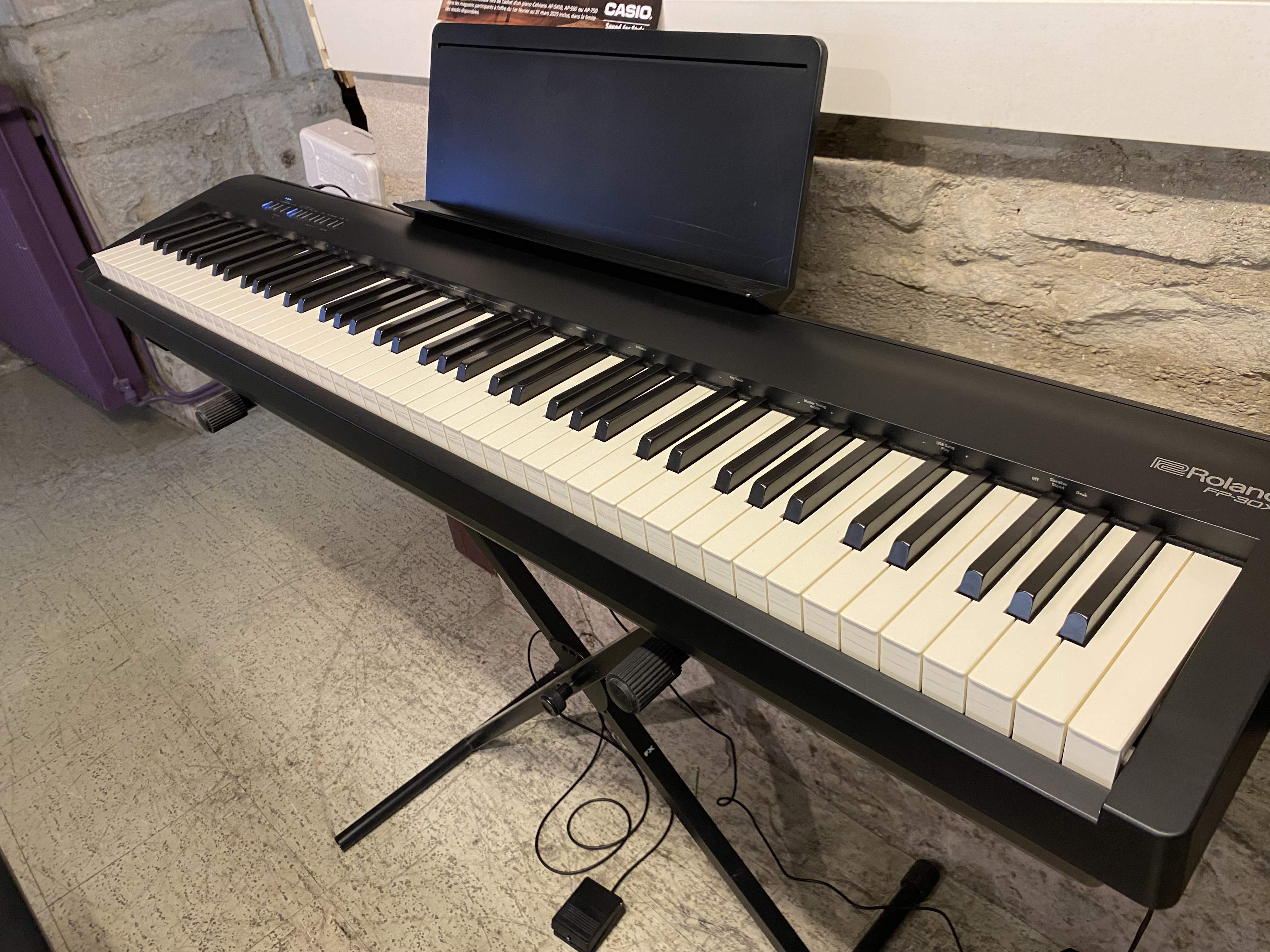 Lorsque la qualité est importante mais que le budget est limité, le FP-30X constitue le modèle idéal dans la gamme FP-X Roland. Réussissant le fragile équilibre entre prix réduit et performances supérieures, ce piano portable fin et stylé se place au-dessus du FP-10 d'entrée de gamme grâce à un générateur de son amélioré, des haut-parleurs plus puissants et une polyphonie supérieure. Intégrant la technologie SuperNATURAL Piano Roland et le même clavier 88 notes PHA-4 Standard que le FP-60X, le FP-30X est un instrument domestique idéal pour les pianistes chevronnés. Et grâce à son poids plume et sa connectivité Bluetooth pour les cours et le jeu sur de la musique, il constitue le choix idéal des pianistes de tout niveau qui souhaitent travailler l'instrument ou jouer dans de petites salles.