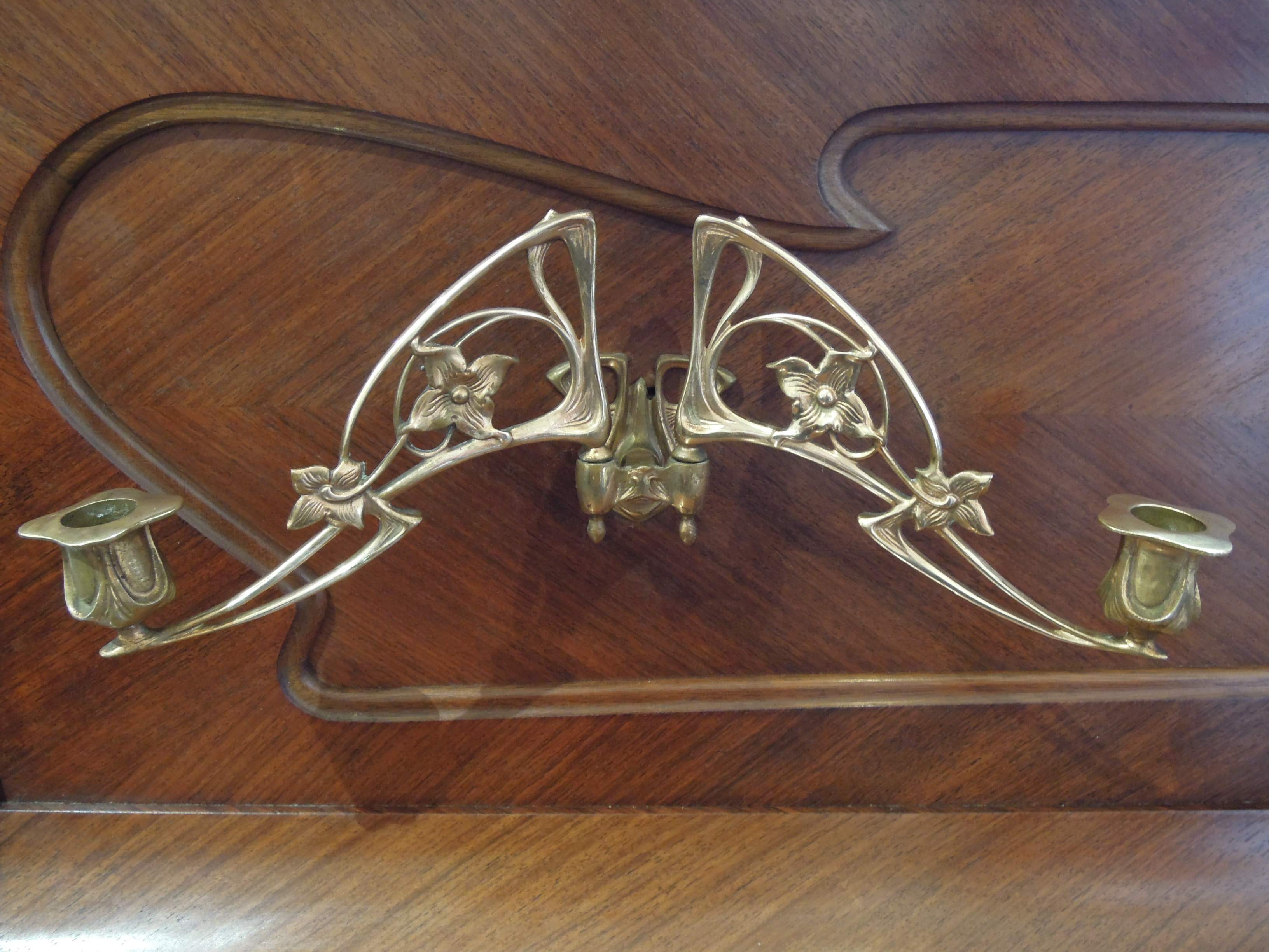 Magnifique meuble en palissandre avec motif de soleil et bougeoirs